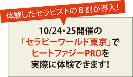 決められた時間のなかで結果が出せ、温熱体感も持続できるヒートファジーPRO。セラピスト自身の体力も温存でき、施術ムラがなくなり、男性客にも対応ができると良いことづくめ。百聞は一見にしかず、ぜひあなたも体感してください!