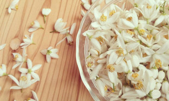熱々の容器に、蜜ろう(1g)、ベースオイル(5ml)を入れ、湯煎にかけます。蜜ろうが溶けたら、火から長編、粗熱を取ってください。オレンジ(3滴)、ネロリ(2滴)、ローマン・カモミール(1滴)も加えます。