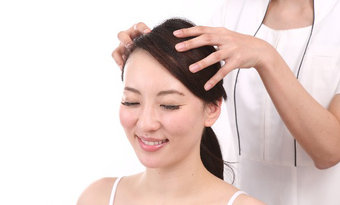 ティートリー(1滴)を指先に取り、左右のこめかみに優しくすりこみます。 次に、両手を開き、5本の指の腹で、頭皮を揉みほぐしましょう。 頭皮を動かすようにイメージしながら、頭全体をマッサージします。