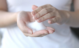手のひらに泡立てて、やさしく肌を撫でましょう。ブラシで強くこすると、肌が荒れて痒みが起きやすくなります。