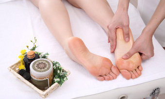ベースオイルとスイートマジョラム(1滴)を混ぜて、マッサージオイルを作ります。十円玉大のオイルを、足裏全体に伸ばしましょう。握りこぶしの第二関節を土踏まずに当てて、体重を掛けながら強くめにこすります。