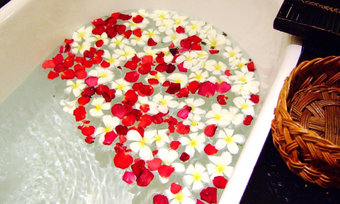 沸騰のお湯にサンダルウッド(3滴)を落としてよく混ぜて入浴します。 身体が緩んできたら、ストレッチを行いましょう。 湯船の縁を両手で持ち、ゆっくり腰をひねります。