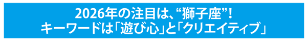世界情勢もそうですし、社会や政治の変革も大きく、またAIなどの技術進化も目覚ましい一年でした。新たな変化に対応せねば……と焦りが生まれたというサロンも多いかもしれません。しかし2026年の運気に乗る心構えとしては、獅子座の示すように「変化」より「進化」と捉え、楽しんで選び取っていくことが大切なのだとか。