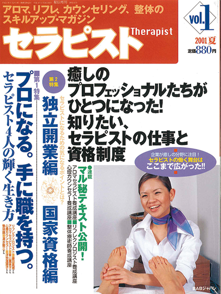 そうした流れを経て、アロマテラピーやリフレクソロジー、整体、心理カウンセリングなどのスキルを用いた“癒し人”向けの専門誌、『セラピスト』が誕生することになります。