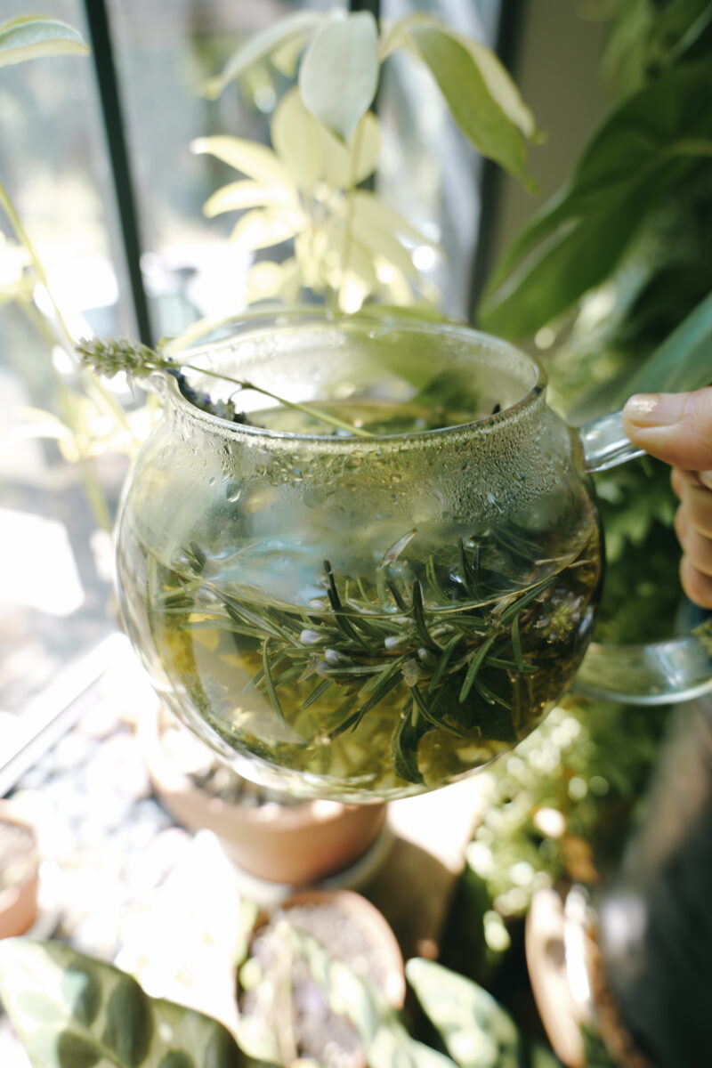 ハーブティーというとお湯で抽出する方法が一般的かと思いますが、私は水出しのハーブティーの風味も大好きです。ゆっくりと時間をかけて抽出されるので、お湯で抽出した時よりも味がまろやかで、その植物の持つ微細な香りや雰囲気がそのまま味わえるような気がします。ドライハーブでも、フレッシュハーブでも楽しめます(フレッシュハーブを用いる場合はハーブの分量を適宜調整してください)。