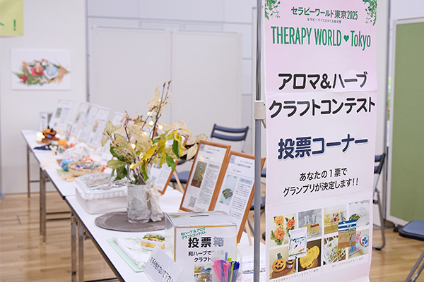 現在も開催中のイベントが、会期中に会場内に展示した「和ハーブ&アロマ クラフトコンテスト」最優秀作品の投票。