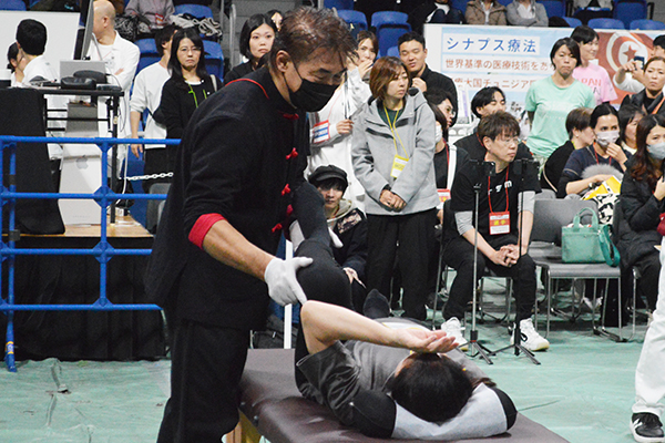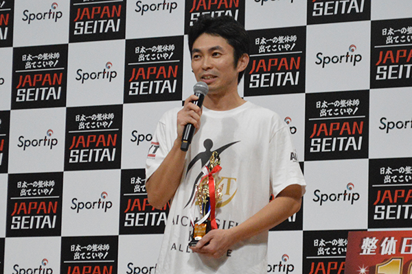 二回目の開催となる今回は、矯正施術、非矯正施術、伝統医療など、あらゆる整体技術を持つ321名がエントリー。初日の1回戦を勝ち上がった120名が2回戦に進み、さらに2回戦では40名が準決勝へ、そして決勝では10名が施術を披露し、日本一が確定した。
