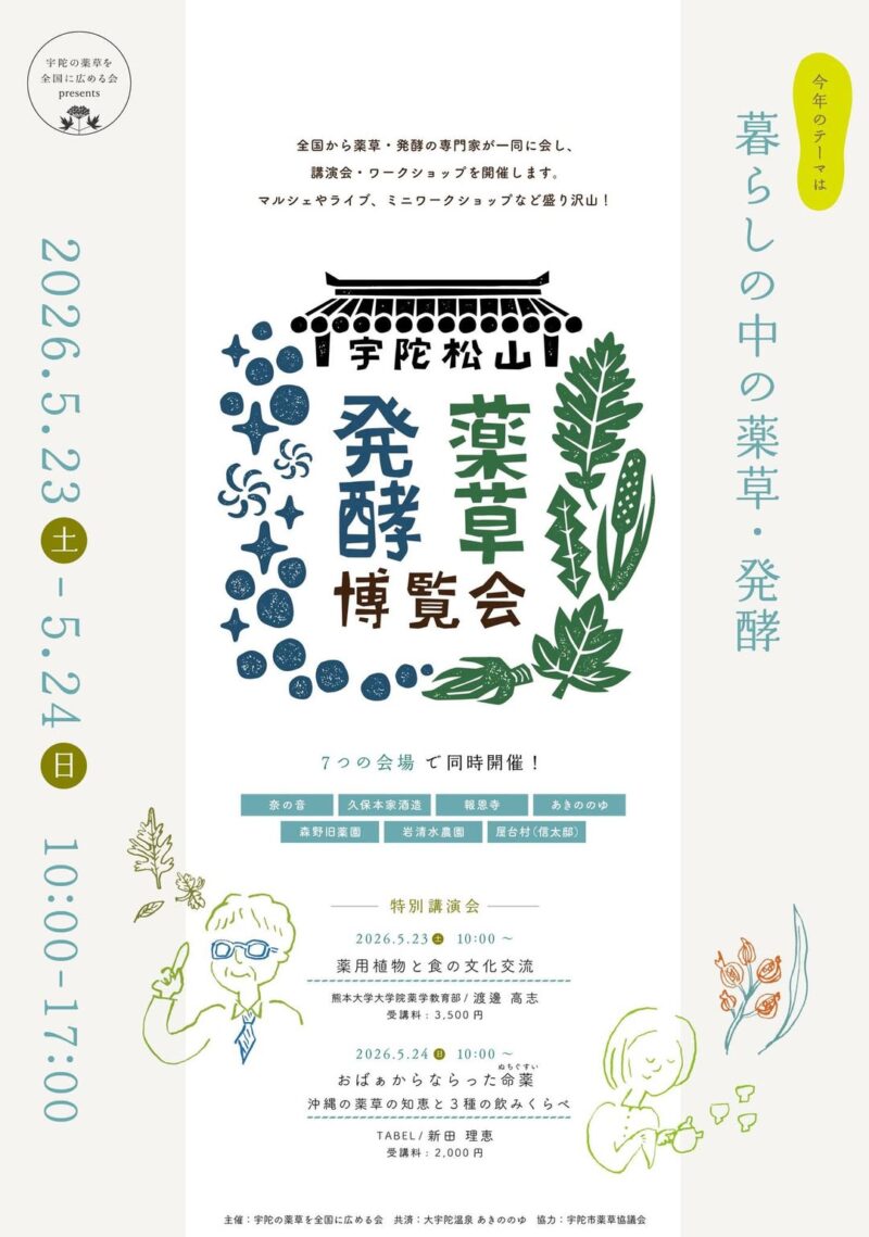 奈良県宇陀市で、薬草・発酵文化をテーマにした体験型イベント「宇陀松山薬草発酵博覧会2026」が、5月23日から24日までの2日間にわたり開催される。本イベントは今回で5回目を迎え、「暮らしと薬草・発酵!」をテーマに、「衣・食・住・健康」の視点から薬草の魅力を発信する。