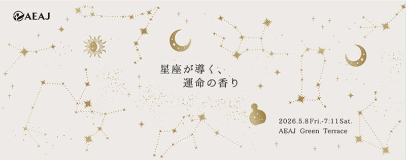 公益社団法人 日本アロマ環境協会(以下、AEAJ)では、5月8日(金)から7月11日(土)までの4カ月間にわたり、企画展「星座が導く、運命の香り」を、東京都渋谷区のAEAJグリーンテラスで開催する。