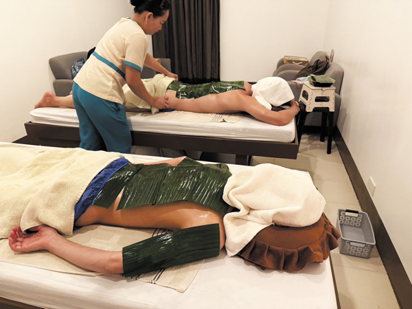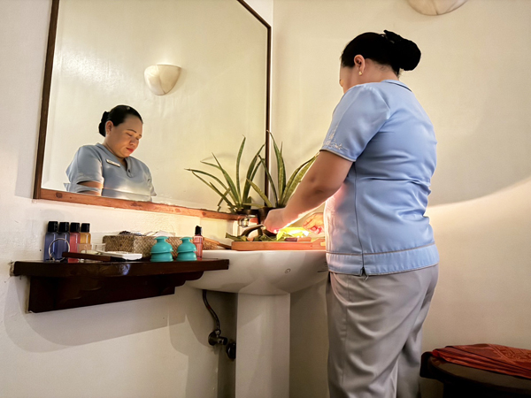 トゥオブ(足湯)、ヒングットアン(頭と肩のマッサージ)、カッピングとグアシャによる温めたTuba-tubaの葉(地元のハーブの葉)を体験して、体内の毒素を排出できる全身トリートメントというもの。こちらはヒロットとアーユルヴェーダを融合させたマッサージにカッピングとカッサと、さらにはツナトゥバという地元独特のハーブの葉っぱを乗せた施術で、ここでしか受けられないため、とても興味を引きました。