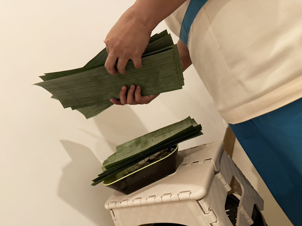 施術に使用するバナナの葉