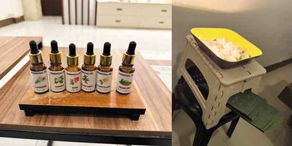 施術に使うオイルと、バナナの葉を温めるためのキャンドル