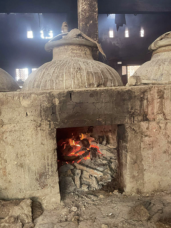 薪、粘土、竹、麻などの自然素材で蒸留を行っている。