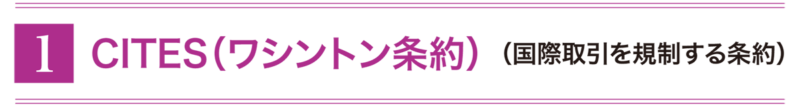 - 野生動植物の国際取引が乱獲を招き、種の存続が脅かされることがないように取引の規制を図る条約